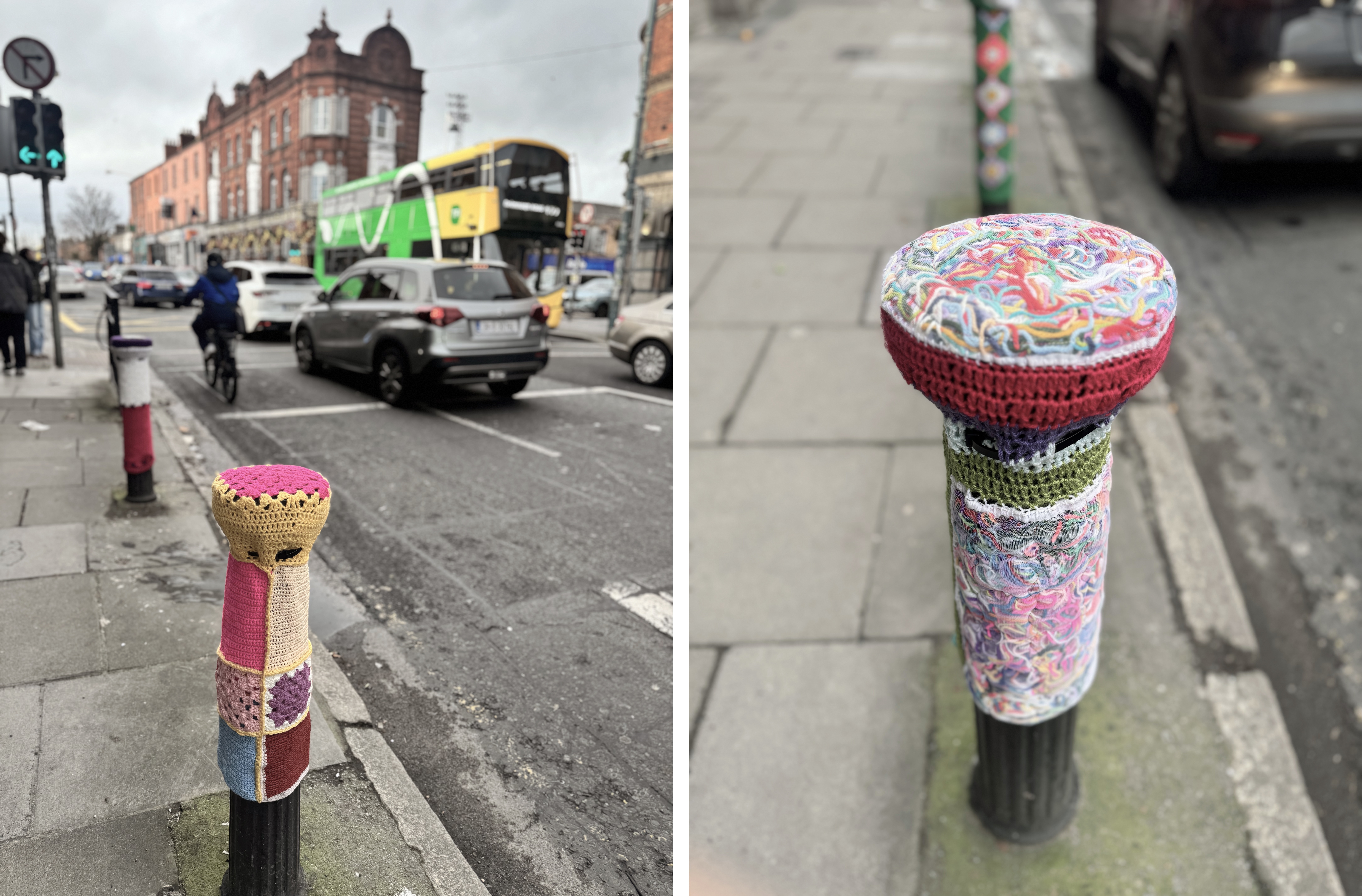 入冬後天天降溫,套上最厚的毛衣出門,萬萬沒想到,今天差點撞衫的不是人,是街頭防撞柱!?馬路旁的人行道,一夜之間貌似有小精靈來訪,留下一整排穿著溫暖毛線衣、準備好過冬的小柱子,難不成愛爾蘭真的有魔法?