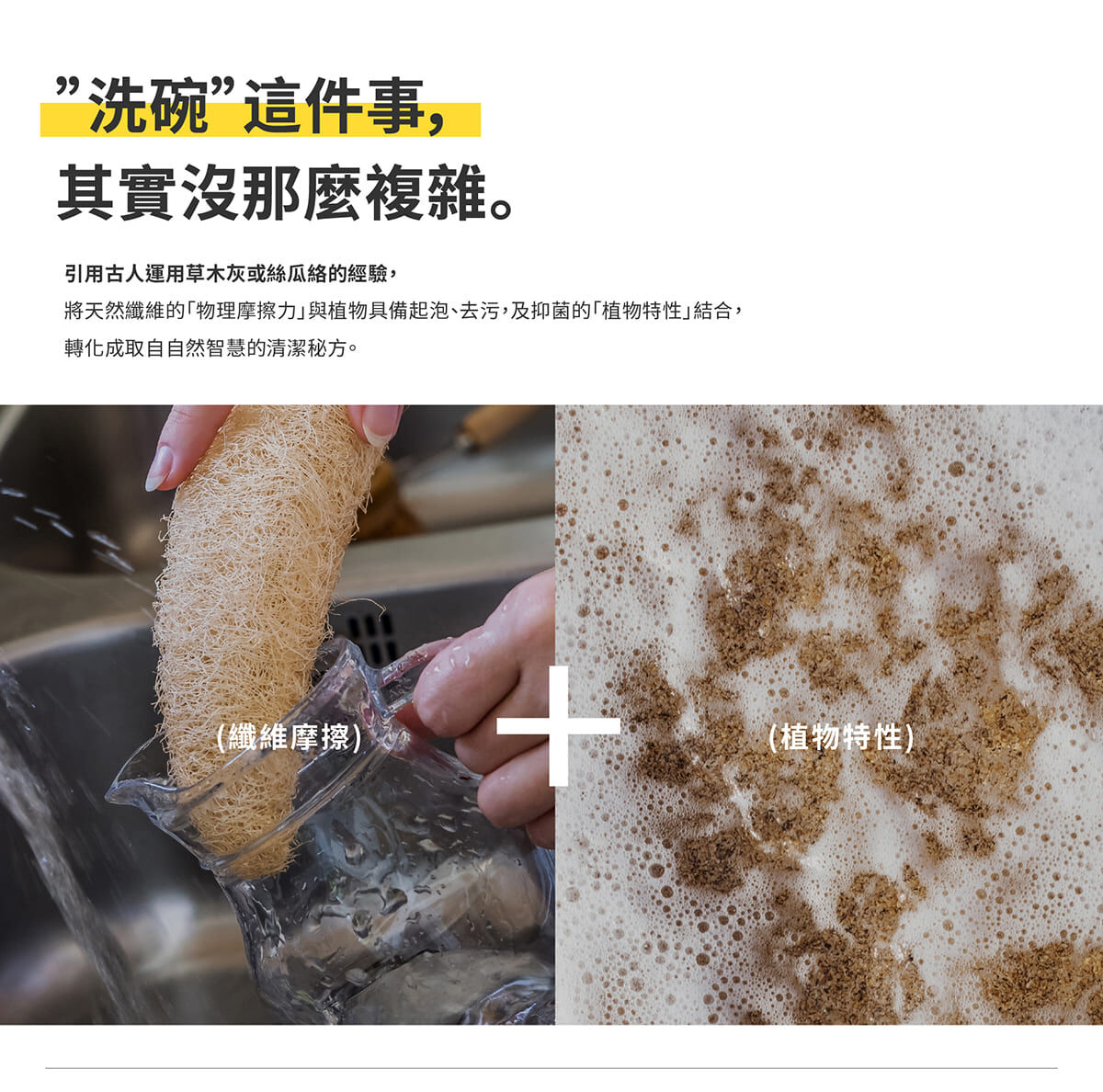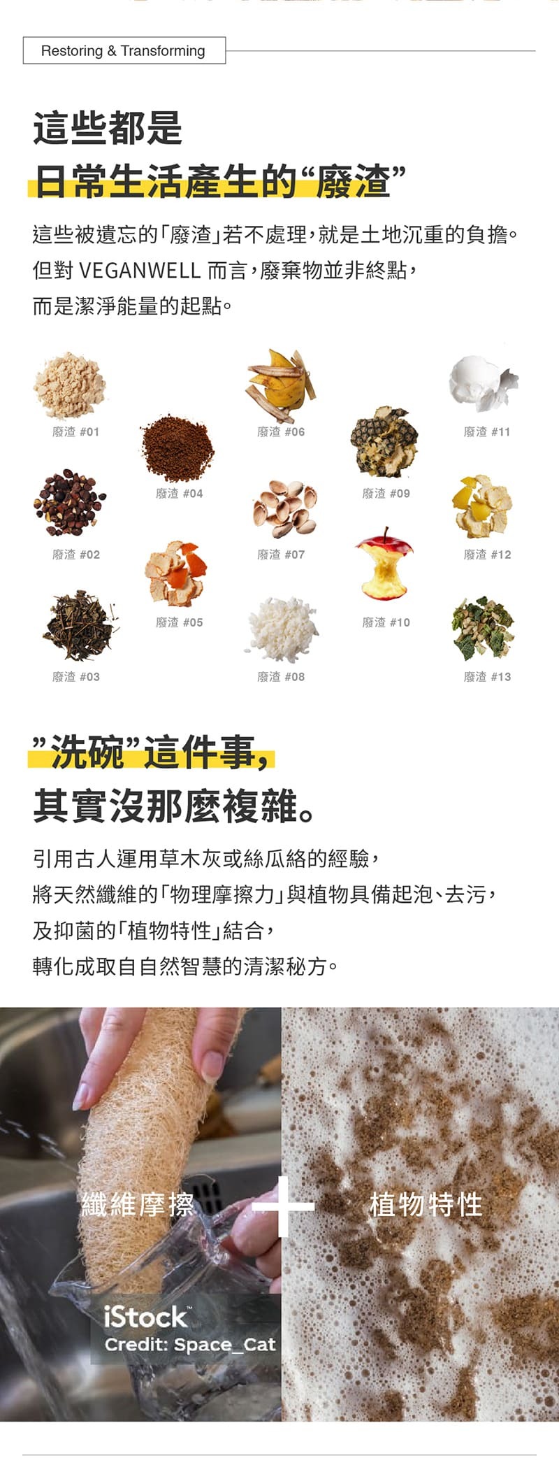 - 植物廢渣利用,有效清潔碗盤